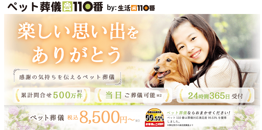 ペット葬儀110番は、「初めてで不安」「どこに頼めばいいかわからない」という飼い主さんに最適なペット葬儀業者です。