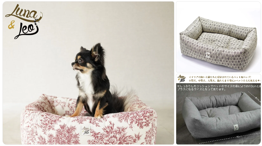 レオエルナのベッドは、イタリア・ミラノ発のブランドが手がけており、犬用ベッドとしてはもちろん、飼い主さんのお部屋のインテリアにも溶け込むようデザインされています。 柄や色味のバリエーションも豊富で、「ただの犬用ベッド」以上の存在感があります。