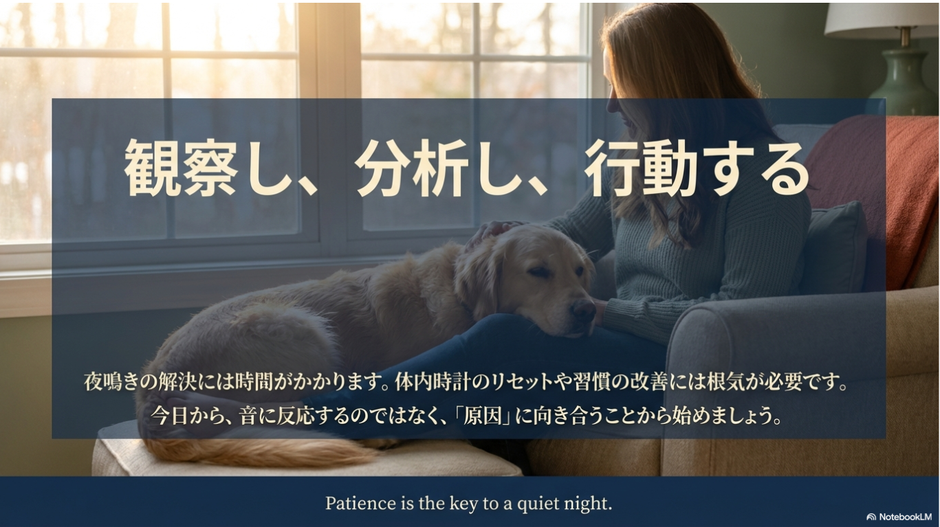 愛犬が発信しているサインを科学的な眼差しで読み解き、適切な環境設定を行うこと。それが、穏やかな夜を取り戻すためのポイントです。